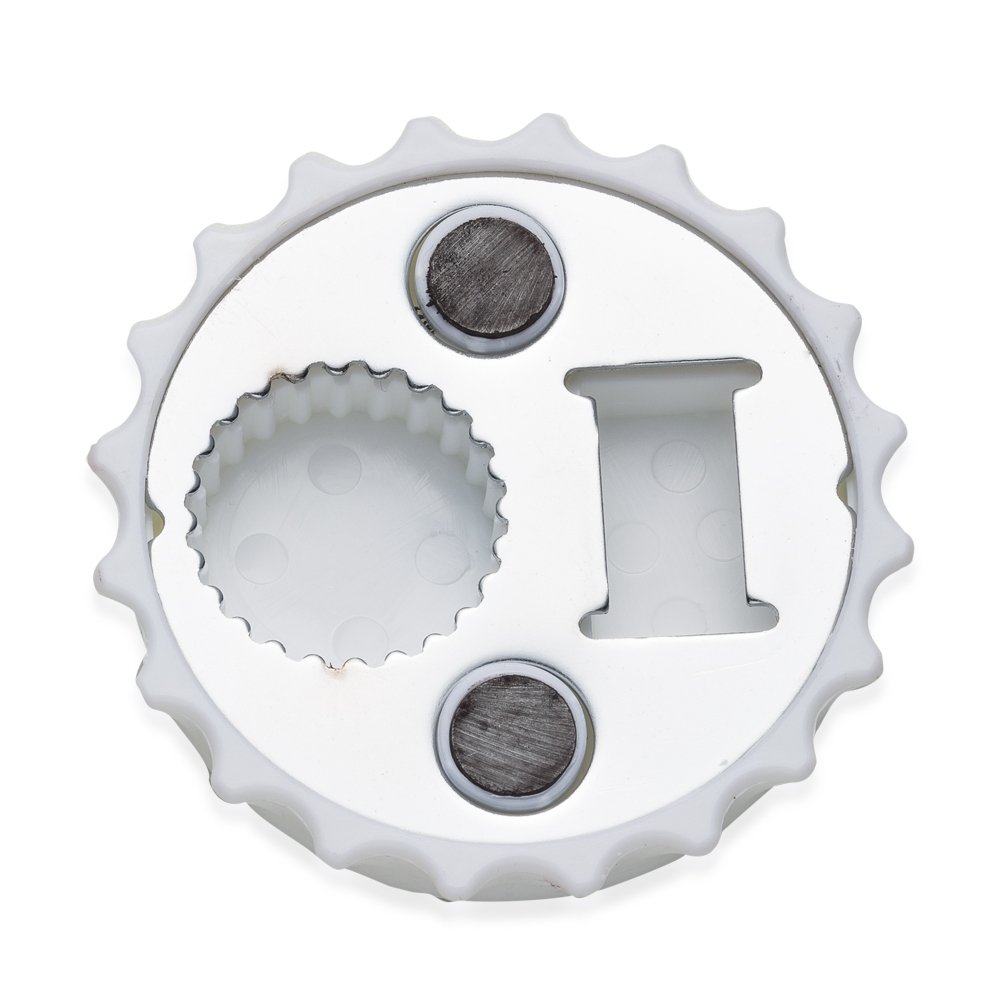 ABRIDOR DE GARRAFA FORMATO TAMPA DE METAL C/ IMÃ DE GELADEIRA SPX-13324 NA COR BRANCO