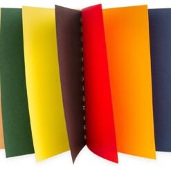Bloco de anotação ecológico com símbolo reciclado na capa, acompanha as folhas: vermelha, amarela, laranja, azul, verde e preto, possibilitando deixar a cor desejada como fundo do logo reciclado. Possui aproximadamente 70 folhas brancas pautadas com logo reciclado na lateral inferior das folhas, possui também elástico suporte para caneta(não acompanha caneta).