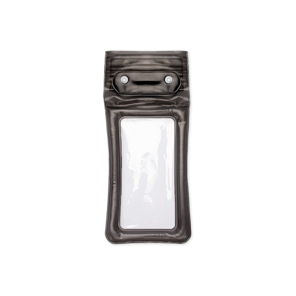 Capa impermeável com classificação IPX8 para smartphones, feita em PVC resistente, com área sensível ao toque que permite o uso pleno do aparelho. Possui vedação hermética e fechamento por botões de plástico. Acompanha cordão ajustável em nylon.
