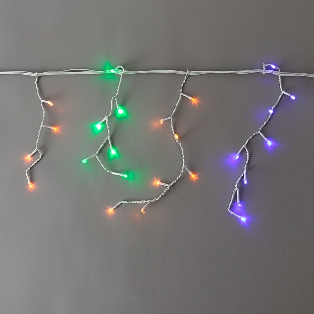 Pisca-pisca em formato de cascata com 400 LEDs distribuídos em aproximadamente 10 metros de cabo de alimentação. Dispõe de 8 modos de iluminação controláveis por painel disponível na extensão do cabo, além de plug para conexão a outros conjuntos compatíveis.