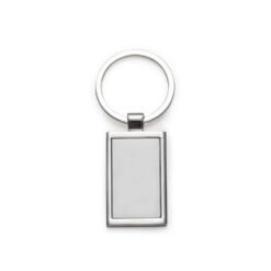 Chaveiro de metal retangular com chapa central, verso liso.