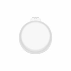 Escova com espelho redonda em plástico resistente. Parte superior plana e parte inferior emborracha com relevo, estando aberta a peça basta empurrar a parte emborrachada(lado de fora) para poder utilizar a escova.