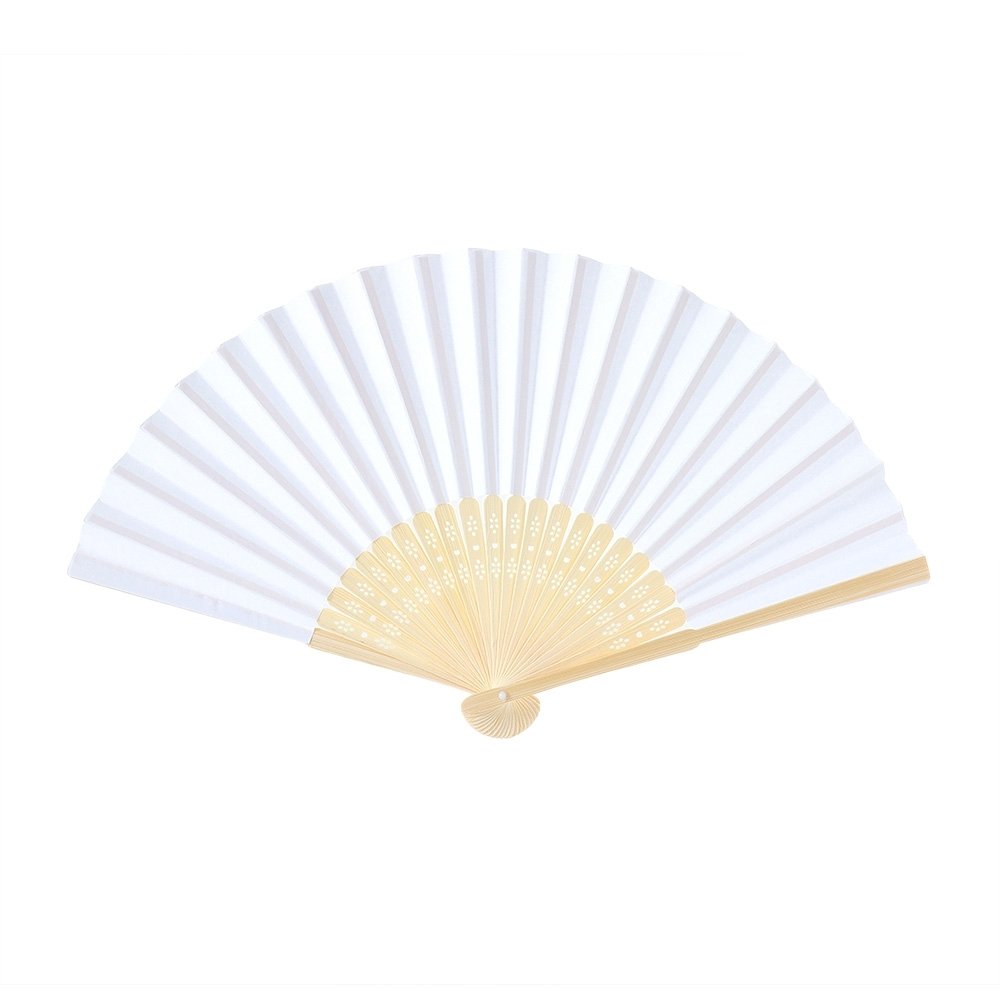 Leque ecológico feito em bambu e papel.