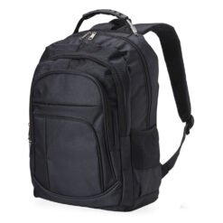 Mochila de nylon 30 litros com quatro compartimentos, sendo o principal com bolso para notebook 15,6. A mochila possui bolsos laterais em malha, duas alças de mãos e área costada com revestimento espumado.