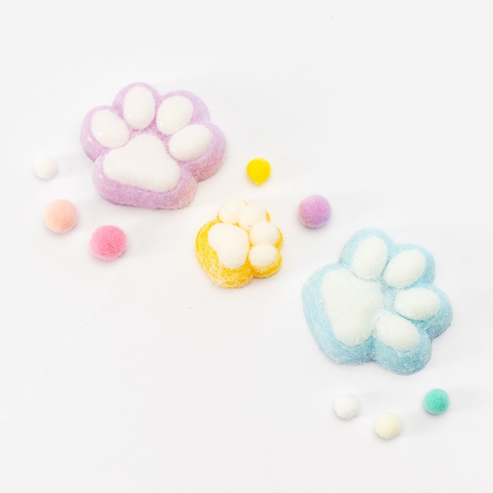 Brinquedo apertável antiestresse em formato de pata estilizada. Cada embalagem contém duas unidades em tamanhos diferentes. Produzido em borracha termoplástica de textura lisa e macia, que adere facilmente a superfícies planas. Acompanha bolinhas decorativas em pelúcia.