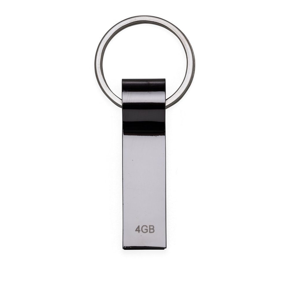 Pen drive metálico com pintura grafite espelhado e chaveiro.